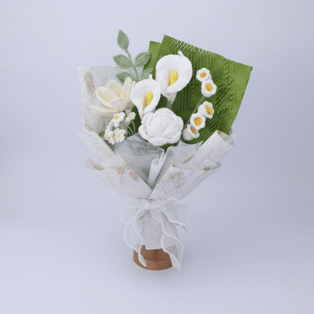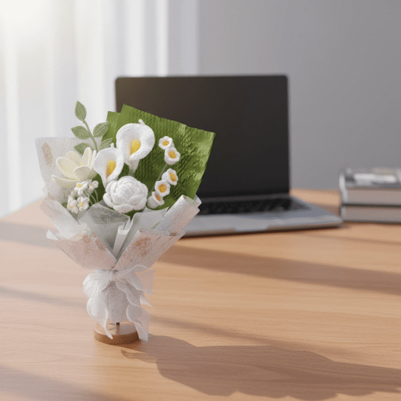 Handmade Crochet White Flower Bouquet – Everlasting Artificial Gift/Decor