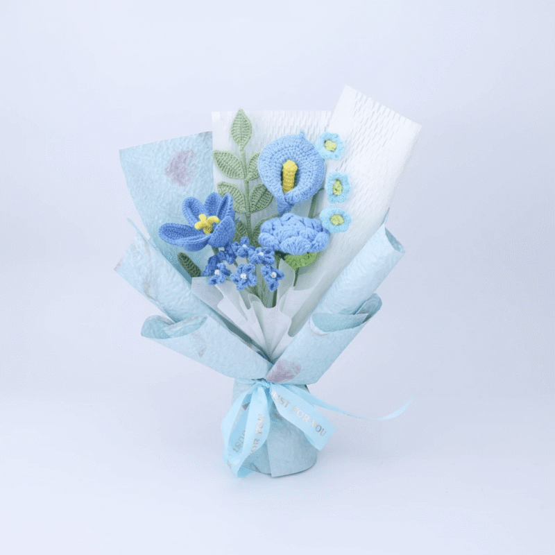 Handmade Crochet Blue Flower Bouquet – Everlasting Gift/Decor