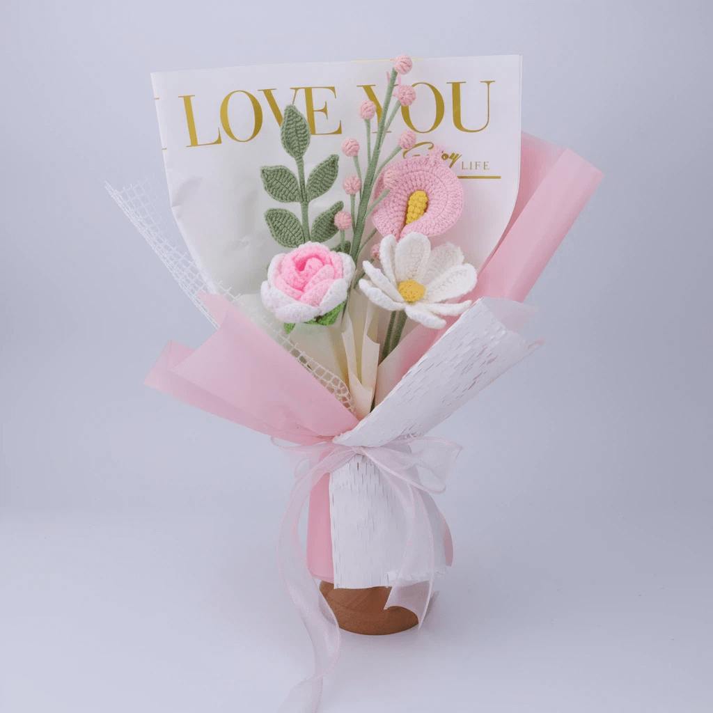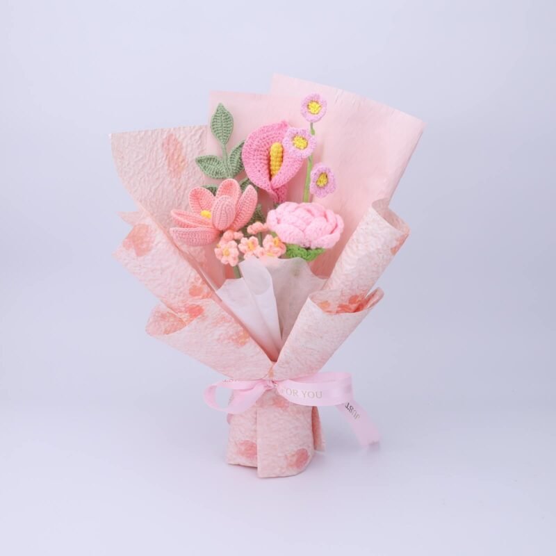 Handmade Crochet Flower Bouquet | Romantic Pink Collection