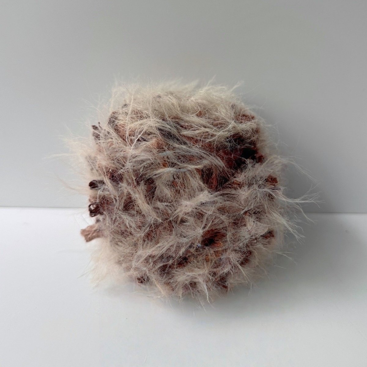 This inviting hand-blended yarn features a creamy coconut-white base, swirled with rich dark and light coffee-brown fibers. The result is a warm, textured finish that feels like a freshly made coconut latte—soft, fuzzy, and utterly comforting.