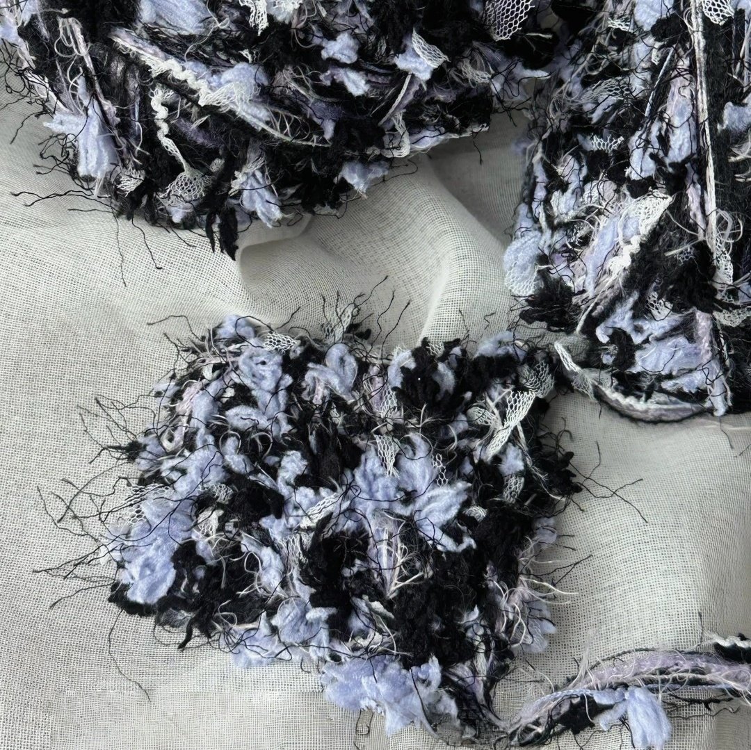 🧵 Texture & Material: Blended with fine mesh lace fibers and fuzzy, plush strands, the surface shows irregular fluff and delicate gauze-like texture. It feels fluffy and carries a casual, slightly raw touch, giving finished projects a wild, relaxed three-dimensional texture.