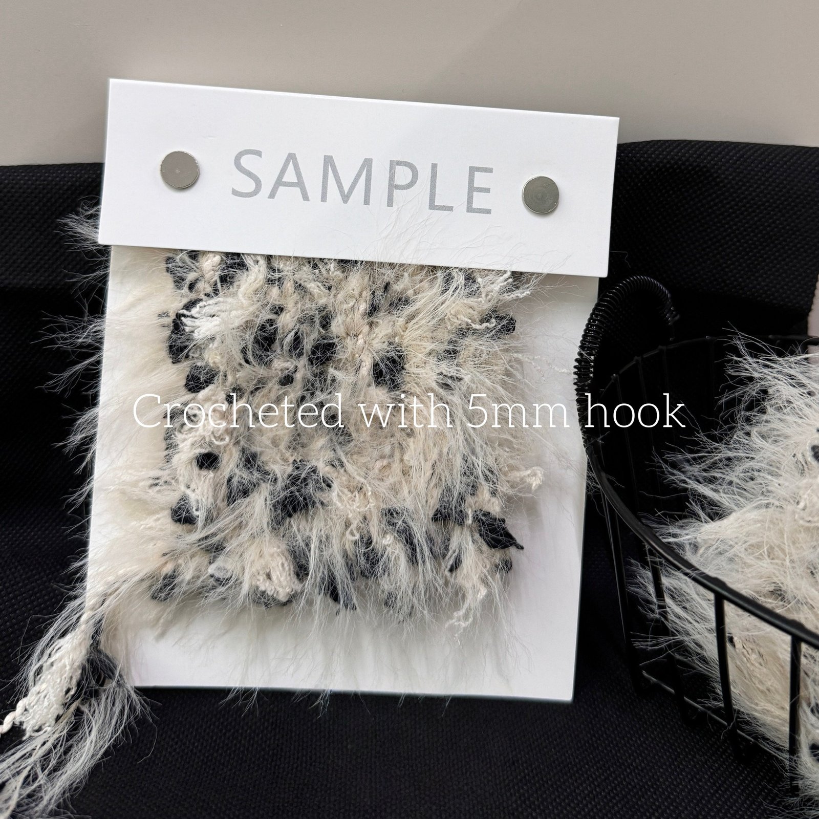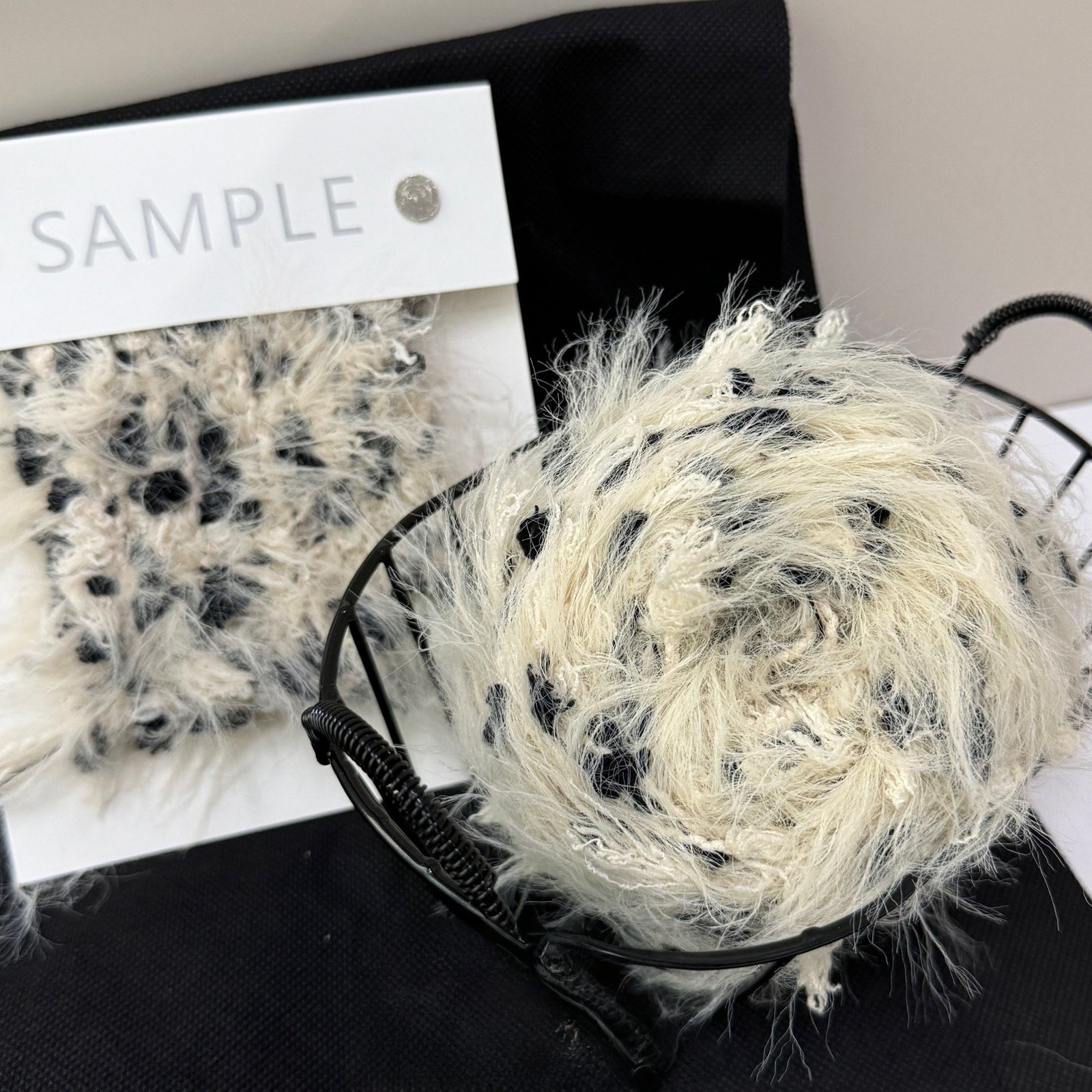 A soft, creamy white base blended with bold black speckles and fluffy, feathery texture, capturing the cool, sophisticated vibe of a Munich winter night.